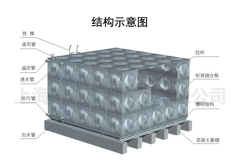 由單元矩型模壓板,優(yōu)化組合,任意拼裝,利用最少的耗材,通過材料變型的方法達(dá)到最佳強(qiáng)度的效果,水箱成型后的線型流暢,立體感好,且能美化市容。